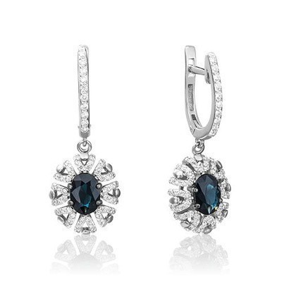 первая страница > Ювелирные изделия > PLATINA Серьги с английским замком из белого золота 585 пробы c сапфиром и бриллиантами